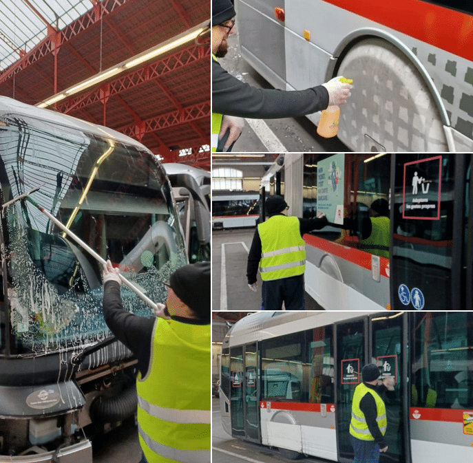 Expérimentation du nettoyage sans eau pour l'extérieur des bus de KEOLIS à Lyon