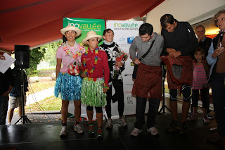 Enfin, la très prisée coupe annuellement remise en jeu du challenge inter-entreprises a été finalement remportée par la société Cegelec juste devant Mentor Graphics, qui avait aligné un nombre impressionnant de coureurs ! Suivaient de près les équipes Inria, Moody’s Analytics, Sorin et Capgemini. Le tout dans une ambiance mi soleil mi-pluie qui n’a en rien gâché la bonne humeur générale, portée par une équipe de bénévoles (signaleurs, sécurité, distribution des dossards et des nombreux lots, etc) qui prend visiblement toujours autant de plaisir à faire de ce RDV un vrai moment de convivialité. Trois équipes avaient même joué le jeu du concours de déguisement : les écossais d’Insight Outside ont affronté les tahitiennes et c’est finalement la vachette Christine Butozzi de Vitherm qui a remporté les faveurs du public !